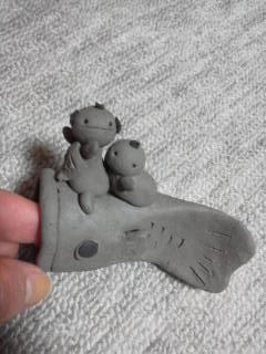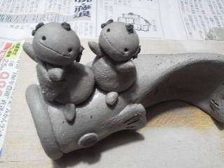 この前 釉薬 鯉のぼりの部分だけ 織部掛けてきました