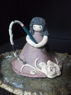 手元には穴を開けて お香を持たせるように作った作品